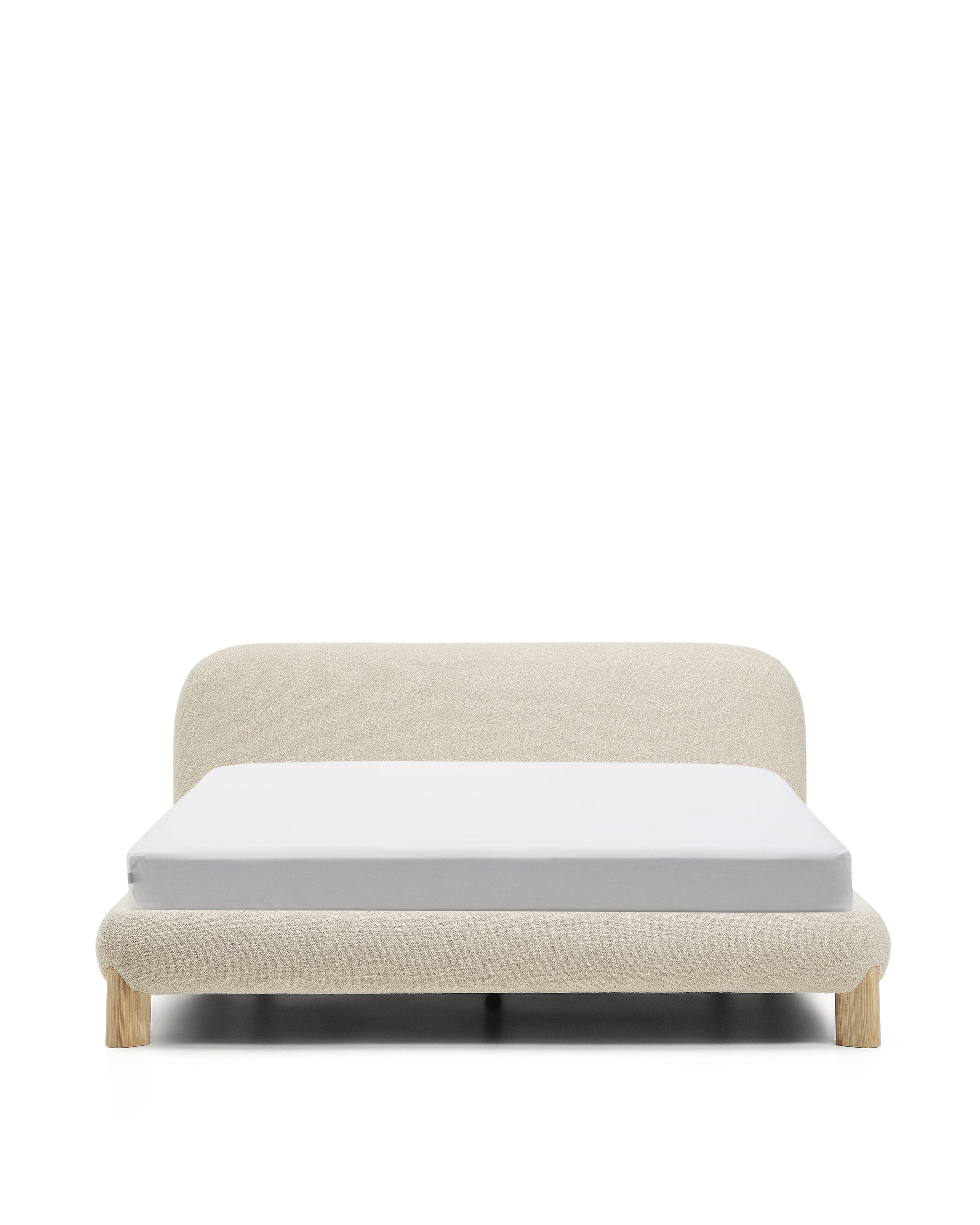 Kave Home Odina Ecru Bouclé Seng Med Aftageligt Betræk Og Ben I Massivt Asketræ Med Naturlig Finish Til